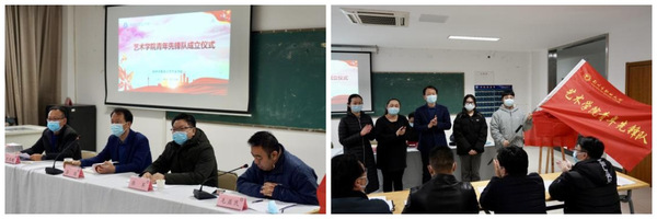 会上,毛益民宣读了成立艺术学院青年先锋队的决定,华炜向青年先锋队授旗,张军为青年先锋队队长发放了聘书,青年先锋队队员宣读了庄严的入队誓词。学院青年先锋队的成立旨在聚力打造一支拉得出、冲得上、打得赢的艺术青年“铁军”,吹响青年党团员使命催征的集结号,擂响投身志愿服务、学风建设、监督检查、疫情防控等任务的隆隆战鼓,勉励青年练就铁肩膀、硬脊梁,在推进学院工作高质量发展的征程中更好地发光发热。