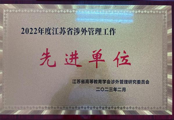 近日,冰球官网参加了在镇江举办的江苏省高等教育学会涉外管理研究委员会2022年年会暨新时代高等教育涉外管理的机遇与挑战研讨会。会上公布了2022年涉外管理工作先进单位和个人,冰球官网荣获“2022年度江苏省涉外管理工作先进单位”荣誉称号。