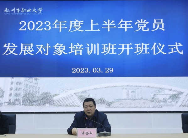 开班仪式上,学校党委副书记、副校长、党校校长许金如作动员讲话,党委委员、组织(统战)部部长华炜主持。许金如指出,开展集中培训是严把“入口”关,确保新党员质量的重要举措,要成为一名合格的中国共产党党员,就必须学习党的理论和知识,了解党的过去、现在和未来;特别是要认真学习贯彻党的二十大精神和习近平新时代中国特色社会主义思想,不断提升自己的理论素养。希望大家通过本次培训,真正做到学有所思,学有所获,学有所得,争取早日在思想上、行动上、组织上加入到党的行列中。