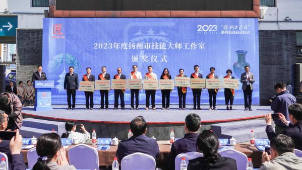 5月9日上午,由市政府主办,市人社局、市总工会共同承办的首届“扬州工匠日”系列活动启动仪式在扬州486非遗集聚区广场举行。活动现场公布了2023年度扬州市企业首席技师、扬州市技能大师工作室评选结果。冰球官网徐继红教授领衔的技能大师工作室入选扬州市技能大师工作室。徐继红大师应邀参加了此次工匠日的启动仪式,并作为高技能人才代表参加了技能大师工作室授牌仪式。