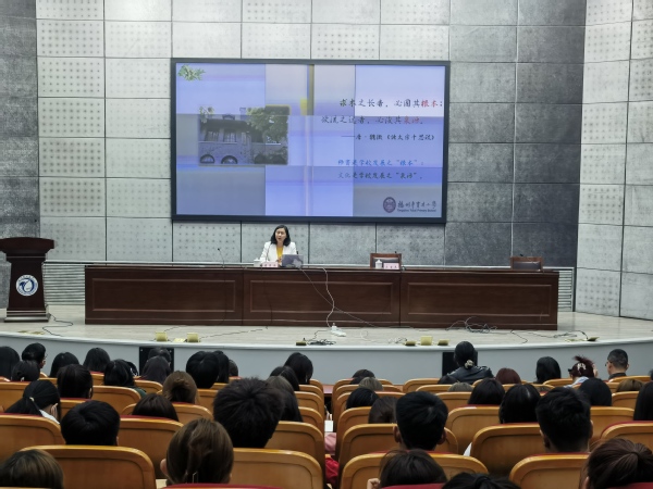 褚晓泓从教师工作的职业特点、上学期间如何学习、实习期间怎样学习、怎样当一名“四有”好老师、怎样做智慧型班主任等五个方面为切入点,分析和阐述了当一名好老师的核心特质、理念、结构、方法,向学生们传递了“好老师是炼出来的”这一理念,并期待大家都能成为一名“四有”好老师。
