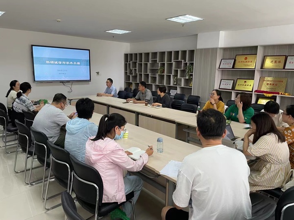会上,副院长薛芗带领大家学习了《关于进一步弘扬科学家精神加强作风和学风建设的意见》《科学技术活动违规行为处理暂行规定》等文件,从工作规范、科研诚信、典型案例、应知应会四方面深入阐述了科研诚信是科技创新的重要基础,并通过案例警醒全体教职工要引以为戒,对今后学院科研诚信和学风建设提出要求,努力营造弘扬科学精神、坚守科学道德、遏制学术不端、共建良好学风的学术氛围和科研环境。
