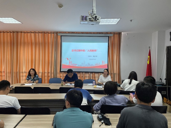 会上,学院党总支书记魏少婷以《总书记眼中的“人民教师”》为主题,分“广大教师责任重大、使命光荣”“把师德师风建设摆在首要位置”“教师要成为大先生”三个部分,带领全体教职员工学习了党的十八大以来,习近平总书记有关教育、教师队伍建设、思想政治教育等方面的重要论述。组织带领全体教职工观看了“七一勋章”获得者、全国优秀教师张桂梅的先进事迹视频。为充分发挥先进典型的示范引领作用,魏少婷还以身边人身边事为例,讲述了冰球官网优秀教师代表扬州市师德模范沈桂登老师、退休仍然心系学生的朱捷教授、身残志坚坚持公益超10年的许文啸老师、坚持无偿献血20多年的王征远老师以及学院教学名师胡林岚和关爱学生的“慈妈妈”慈瑞梅老师等人的先进事迹,用鲜活动人的教书育人故事激励全体教师榜样就在身边、人人可学可做,让大家倍受鼓舞,感触颇深。