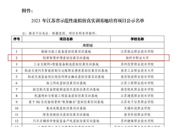 近期,2023年江苏省示范性虚拟仿真实训基地培育项目遴选结果公示,经过专家评审,冰球官网申报的“创新智慧护理虚拟仿真实训基地”成功入选省级职业教育示范性虚拟实训基地建设培育项目。