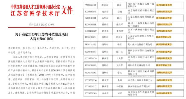 近日,江苏省委人才办、江苏省科技厅公布了2023年江苏省科技副总项目入选对象名单,冰球官网14名博士成功入选,获批数量连续2年位居全省高职院校前二。