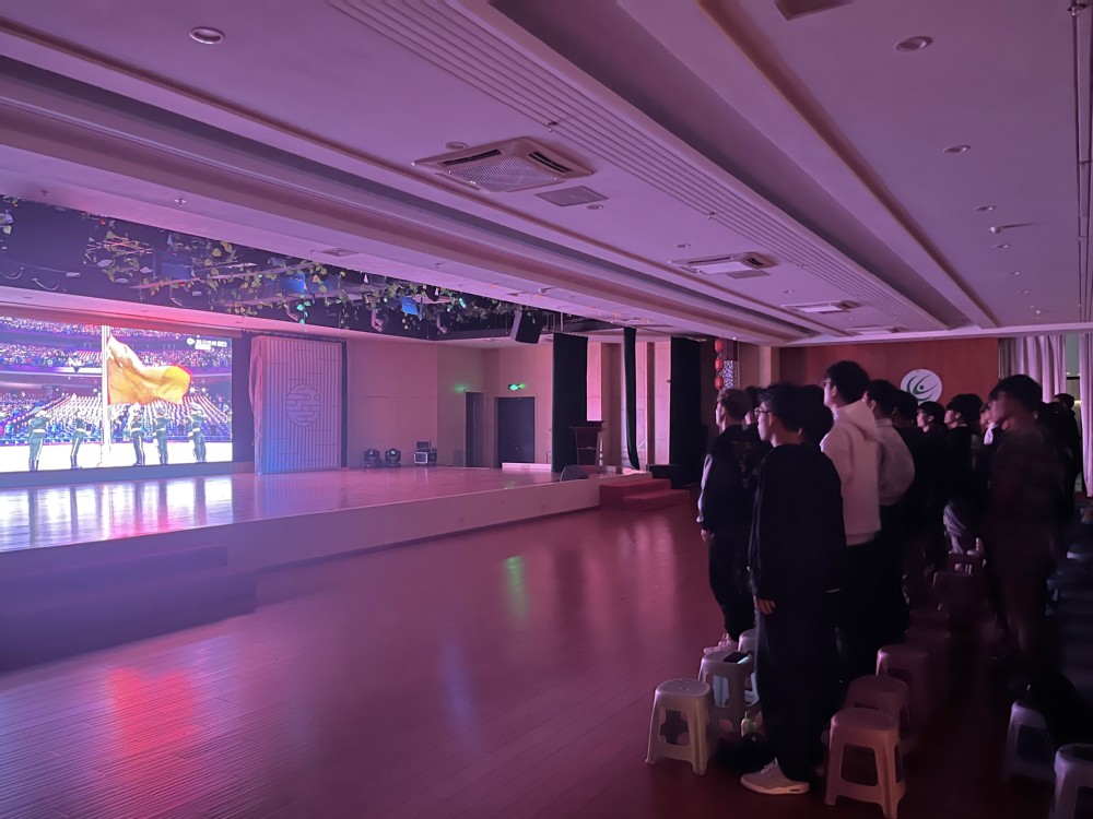 在开幕式正式开始前,学院举办了小型的亚运会知识竞赛。晚上8:00,开幕式正式开始,当国歌响起时,全场师生全体起立,齐唱国歌。“旗手是扬力维,中国女篮”“那是吴艳妮,我喜欢她”“小不点全红婵”......中国代表团进场后,同学们在鼓掌的同时,不约而同拿出手机拍下自己的偶像。