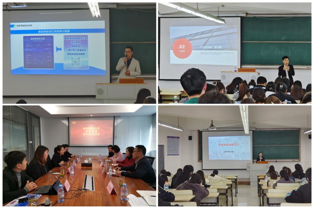 吴美瑾老师向全体24届毕业生介绍了学院与扬州东园食品有限公司的合作情况。她表示,学院一直致力于推进就业和人才培养的联动机制,搭建校企一体的实习就业供需对接平台,她呼吁更多毕业生助力扬州本土企业发展。扬州东园食品有限公司人事招聘经理陈国梁进行了招聘宣讲,他围绕企业发展、用人需求、岗位晋升等方面向毕业生详细介绍了企业情况,向毕业生们抛出了橄榄枝。学院就业信息员张培培老师围绕“就业相关政策”“2024年就业形势”“就业困惑”等方面向毕业生一一作了解读。