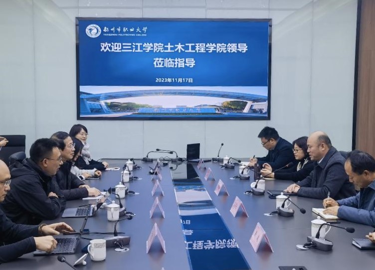近日,三江学院土木工程学院院长胡夏闽一行来冰球官网土木工程学院进行交流指导。校党委委员、副校长吴书安,土木工程学院相关负责人出席会议。