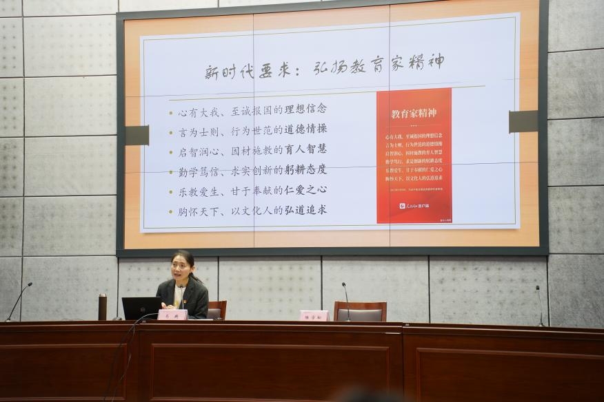 马越老师以“真实的力量守正创新”为主题,以自己的教学生涯为例,从“****,以德立身”的坚实信念、“坚守讲台,提升本领”的踏实工作、“积极探索,守正创新”的扎实学识等三个方面展示了新时代“大先生”的特点和风采,表现出优秀共产党员的使命担当,新时代“大先生”要以“择一事终一生”的态度躬耕教坛,用心、用情当好学生成长的“领路人”。