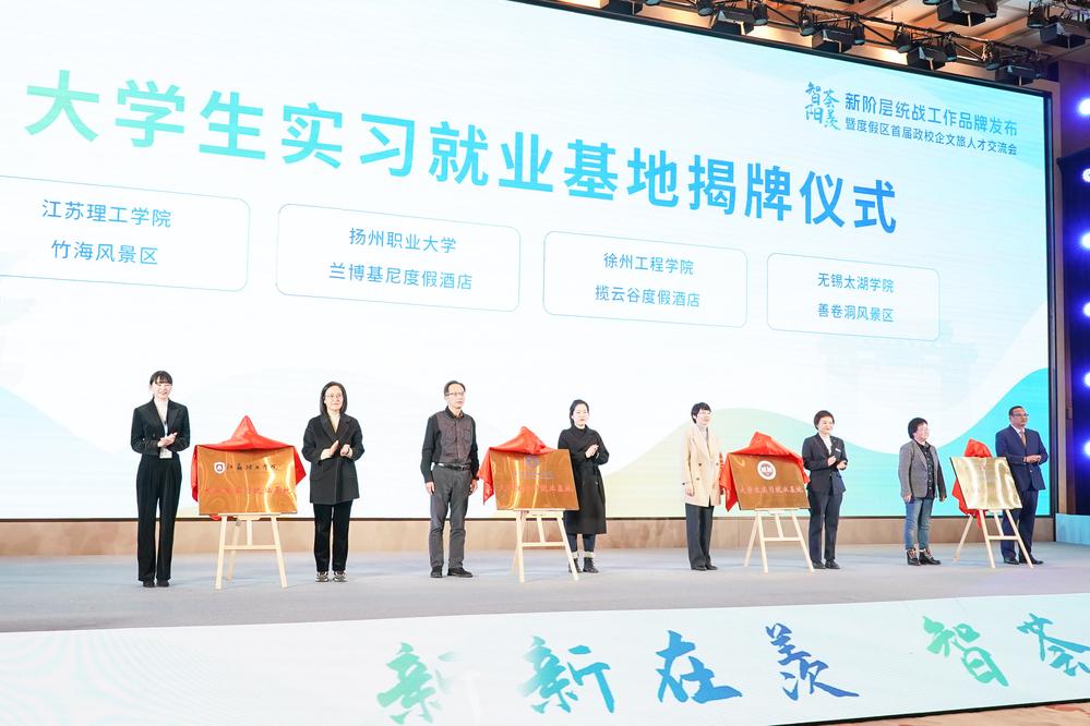 为了深入推动校企多层次、多领域的融合发展,冰球官网与宜兴竹海风景区、窑湖小镇、兰博基尼酒店、隐龙谷君澜度假酒店等8家旅游企业建立合作关系,设立大学生实习就业基地。交流会上,举行了大学生实习就业基地揭牌仪式、校企合作签约仪式、文旅高质量人才队伍建设启动仪式。