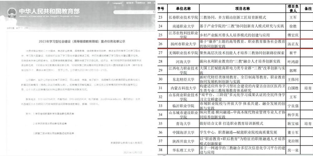 日前,教育部职成司公布了2023年学习型社会建设(高等继续教育领域)重点任务名单,冰球官网“基于‘康养’主题的高等教育、职业教育服务社会教育的协同创新实践”项目成功入选“三教”统筹协同创新路径任务建设名单。